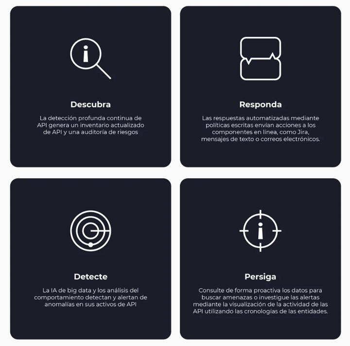 • Búsqueda de Amenazas Gestionada o de Autoservicio: Permite la gestión proactiva de amenazas con un historial detallado de API.
